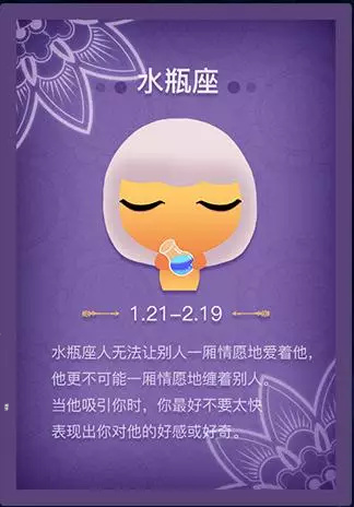 今天小编给自己占卜了一次,还不错,挺有意思的。想占卜的朋友可以评论留下星座和占卜方向,小编来为大家占卜哦!小编的星座是水瓶座。下面我们来看看水瓶座的描述。