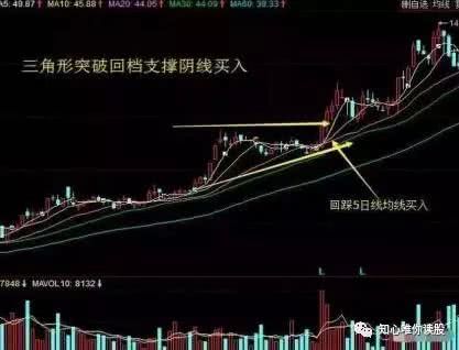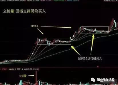 股市价格在上升行情中成交量突然放出巨量,进而股价开始拉升,到一定的点位开始盘整,回踩10日均线阴线买入,明后天,一般会再次突破